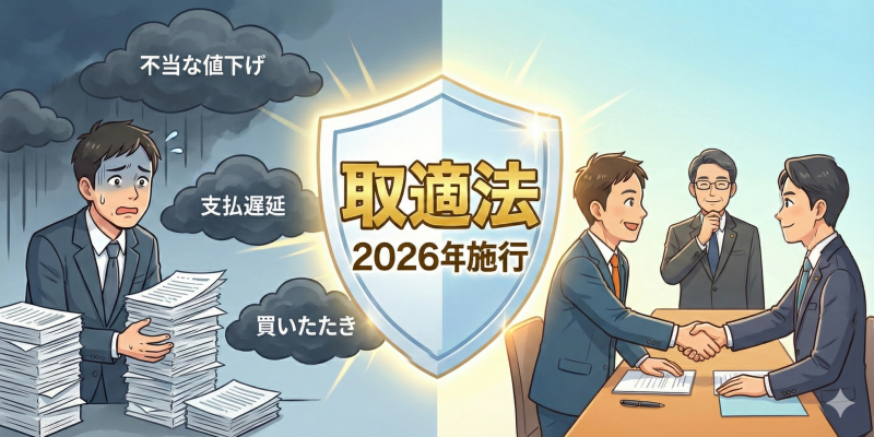です。2026年1月からは「中小受託取引適正化法(取適法(とりてきほう))」という名称に変わり、発注者の禁止行為が追加されるなど、受注者の保護が強化されます(以降、「取適法」で統一します)。