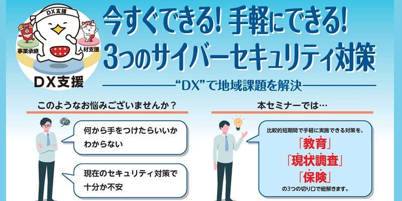 このセミナーでは、サイバーセキュリティ対策の課題を解決するためのアプローチを「教育」「現状調査」「保険」の3つの切り口で紐解きます。